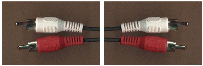 Cable RCA mascle - RCA mascle, també anomenat RCA estèreo. Permet unir una sortida RCA femella amb una entrada RCA femella. Habitualment s'utilitzen els colors blanc (canal mono, dret) i vermell (canal esquerre). Hi va versions en tres fils (habitualment groc, blanc, vermell) on el tercer fil (el groc) s'utilitza per transportar senyal de vídeo.