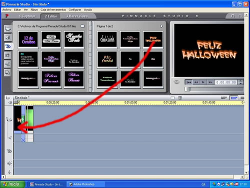 En primer lloc obrim l'Studio 8 i anem a Editar. Obrim qualsevol de les captures fetes a les pràctiques anteriors o qualsevol arxiu de vídeo. Per obrir l'eina de títols podem fer-ho per una icona o pel menú caja de herramientas. Depenent de quina de les dues opcions feu canvia una mica el menú.