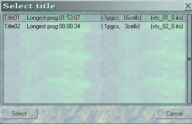 3. Demanarà que seleccioneu les pel·lícules que trobi, especulant sobre la possibilitat que sempre mostrarà les que tenen una durada temporal més gran. Podeu obrir el clip des del DVD original a la unitat de lectura o des de la còpia de seguretat que pugueu fer de forma prèvia a través de File/Open Ifo.