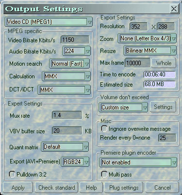 10. Ara definiu els paràmetres de sortida del clip de vídeo a través del menú Settings/outpout Settings: