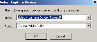S'obrirà un menú de captura de vídeo, així com la visió directa de les imatges que entrin des del port de captura :