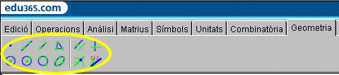 Icones de la pestanya Geometria a la barra d'eines de la Wiris |
