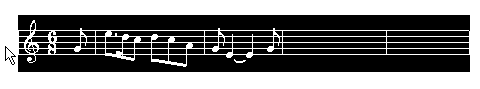 El Music Time té una funció que ajusta de manera automàtica les amplades dels compassos i la distribució de les notes, però per activar-la cal haver seleccionat abans el fragment de partitura on s'haurà d'aplicar. En aquest cas, com que només heu escrit notes al primer sistema n'hi haurà prou amb marcar els compassos que en formen part. Això es pot fer d'una manera molt ràpida, fent un sol clic amb l'eina d'assenyalar a l'espai que queda entre el marge de la pàgina i l'inici del primer pentagrama. (Imatge 8)