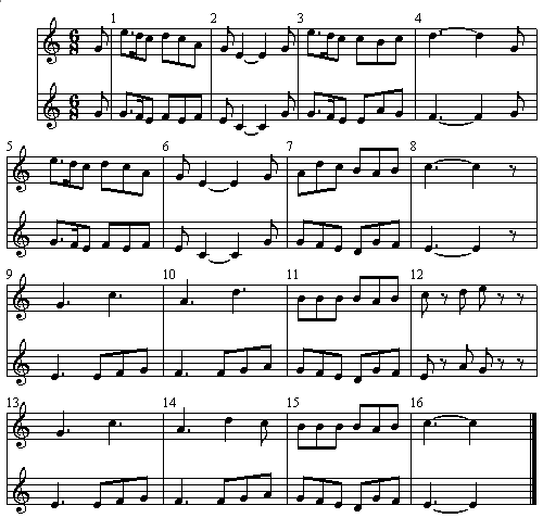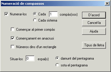 Observeu que el Music Time dona el número 1 al primer compàs complet: el compàs anacrúsic del començament no el té en compte a l'hora de fixar la numeració.