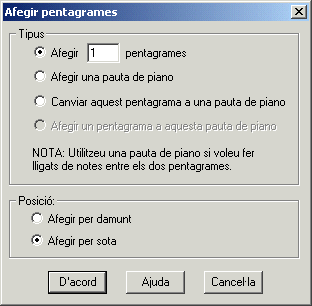Per finalitzar aquesta pràctica afegirem una segona veu a la cançó. El primer que cal fer és afegir un nou pentagrama a la partitura.