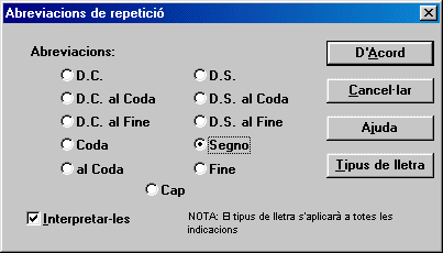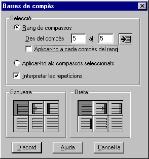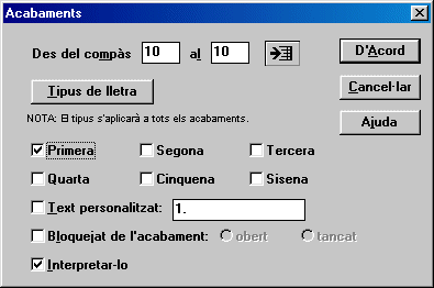 Des de la finestra Acabaments podeu escollir el tipus de bloquejat que desitgeu, obert o tancat, però si deixeu aquesta opció en blanc el Music Time representarà amb el bloquejat tancat els compassos que tinguin una repetició o una doble barra a la dreta presentant un bloquejat obert en els altres casos.