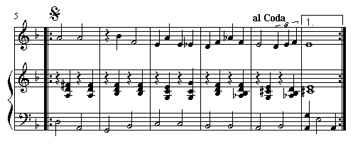 Si reproduïu la peça escoltareu com en la repetició d'aquest fragment salta del compàs 9 al compàs 11.
