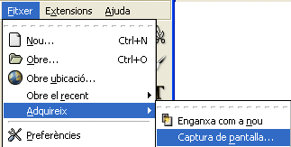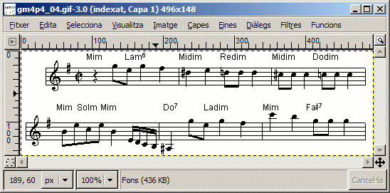 Els educadors ens trobem sovint amb la necessitat d'elaborar material de treball en suport paper (fitxes, exercicis, apunts, proves, etc.). La major part dels programes que utilitzem en l'entorn Windows permeten les accions de copiar, retallar i enganxar d'un programa a l'altre. Pel que fa als editors de partitures, la majoria no permeten copiar o retallar un fragment de la partitura per inserir-lo directament en un processador de textos. Per a solucionar aquest problema haurem de seguir un pas intermedi utilitzant un capturador de pantalles, eina que permet copiar la totalitat o part de la pantalla que estiguem visualitzant. En aquesta pràctica utilitzarem la funció, captura de pantalla, del programa de dibuix GIMP. |