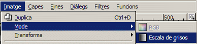 Ara, si voleu, podeu retocar la imatge amb el GIMP per inserir-la posteriorment en el document que us interessi. Un cop tingueu la imatge en el GIMP, cliqueu el menú Imatge | Mode | Escala de grisos per millorar la resolució de la imatge. (Imatge 6)