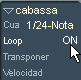 Els loops o bucles, són repeticions automàtiques d'una seqüència. La funció loop permet repetir un passatge tantes vegades com es vulgui sense haver-lo de copiar. Utilitzant aquest recurs afegirem una cabassa al tema practica1. Aquesta cabassa només estarà present en la tornada i en la secció C. Com podeu veure ja existeix una seqüència de nom cabassa en la pista 10, encara que ara està silenciada. Quan una seqüència està silenciada apareix un asterisc davant del nom i amb el voltant il·luminat. (Imatge 12)