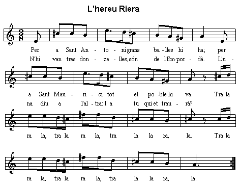 En aquest exercici us proposem que elaboreu un fitxer de karaoke a partir del fitxer hereurie.mid que trobareu a la carpeta D113/fitxers. En la imatge 1 teniu la melodia i el text de les dues primeres estrofes de la cançó. Deseu el fitxer amb el nom m6ex_01.kar. |