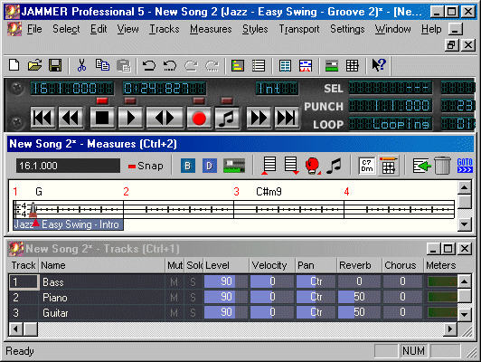El Jammer és un dels programes d'ajuda a la composició que permet crear, a partir dels acords introduïts, els arranjaments complets d'una cançó, dintre d'un ampli ventall d'estils musicals. Això el converteix en una eina que permet explorar idees musicals i ajuda a desenvolupar la creativitat. (Imatge 1)