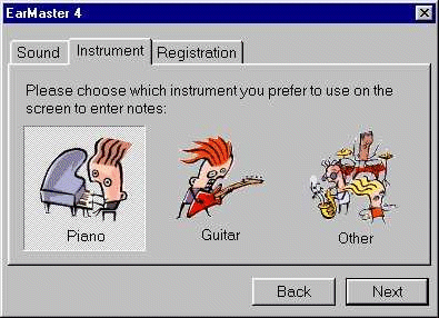o escollir el Modo Tutor prement A la majoria d'exercicis s'ofereixen quatre possibilitats per a introduir la resposta: pentagrama, guitarra, piano o denominació, podent escollir una o diverses opcions simultànies. Pel que fa als exercicis rítmics s'ofereix la possibilitat d'executar-los amb la barra d'espais o amb el ratolí. En aquest segon cas hem de situar el cursor a sobre del text informatiu, sota dels botons de pregunta i resposta. Altra possibilitat que permet aquest programa és introduir la resposta a través d'un controlador MIDI o del micròfon. Ara, proveu de practicar alguns dels exercicis que us proposa el programa.