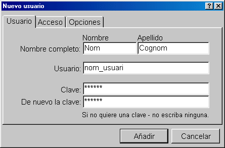En el cas que l'usuari sigui algú, per exemple un alumne, que entra per primera vegada al programa, ha de prémer el botó Nuevo Usuario i consignar les seves dades