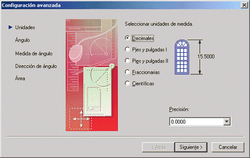 | S'obre una finestra de diàleg anomenada Configuración avanzada. El primer paràmetre que podeu configurar és el tipus d'unitats mètriques que fareu servir, així com el grau de precisió amb què les podreu definir. Trieu les unitats decimals, amb una precisió de quatre decimals. | |