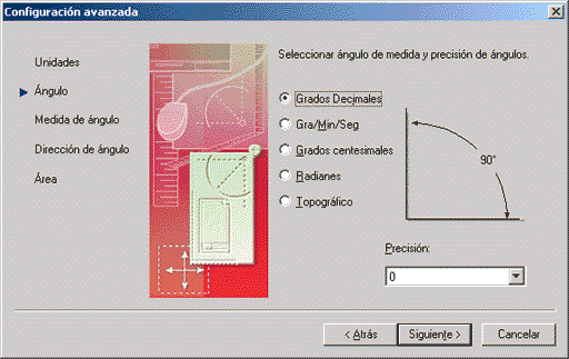 | El segon paràmetre correspon a les unitats de mesura d'angles, i la precisió amb què els podreu definir. Trieu graus decimals, sense cap decimal de precisió. | |