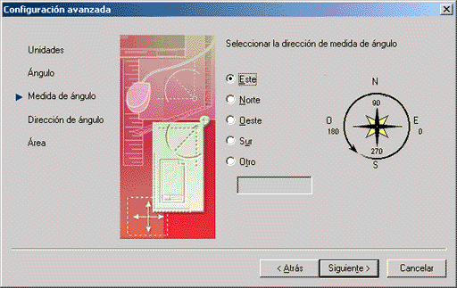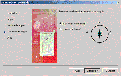 | El quart paràmetre defineix el sentit en el qual mesurareu els graus. Trieu l'opció antihorària. Així, tal com heu configurat el pas anterior i aquest, el grau zero es trobaria a l'est, el grau noranta al nord, etc. | |