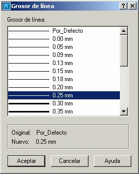 Cliqueu a Aceptar per donar per acabada la definició de l'entorn de treball. Ja esteu a punt per treballar amb un criteri clar del tipus de línia que fareu servir, el color i el gruix que tindrà quan imprimiu |