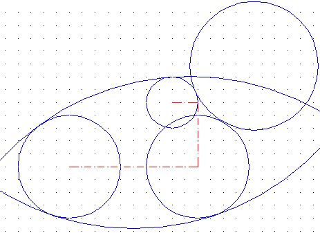 Dibuixeu els tres cercles de la figura 6. Els centres dels cercles es troben en els vèrtexs de la Polilínea anterior. |