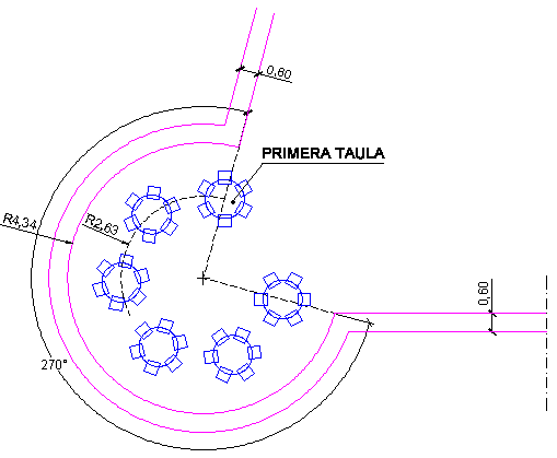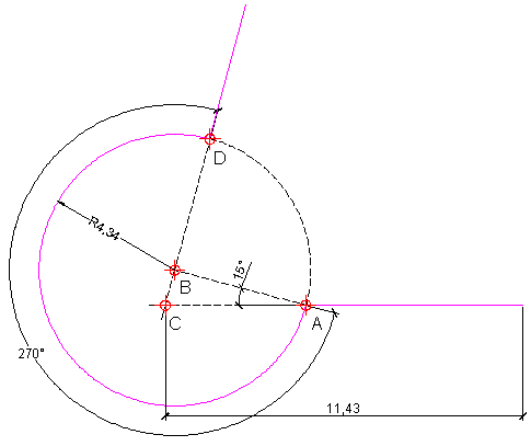 Figura 2. Dibuix d'un arc de radi 4,34 i angle inclòs: 270º
