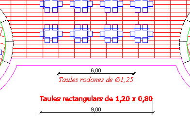En aquest exercici es tracta de dibuixar un sector d'un local en el qual s'introduiran una sèrie de taules amb cadires a fi d'exercitar l'ordre Matriz.