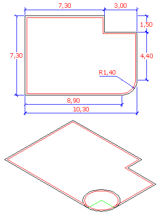 Tot seguit fareu el contorn interior de façana segons l'acotació de la figura 8. Feu un altre contorn paral·lel a l'anterior, 0,30 unitats cap a l'exterior.