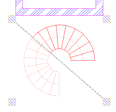 El centre d'aquesta es troba en el punt mig de la línia de traços. Els radis per a aquesta escala són: 0,50 per l'interior i 1,50 unitats per l'exterior. Aquesta escala té un desenvolupament total de 270º i 18 esglaons.