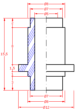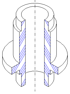 La línia diagonal de traç i punt serveix per situar el centre del cos cilíndric de sobre.