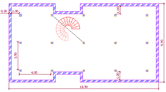 En aquest segon exercici es proposa dibuixar la planta d'una edificació en què intervenen els elements següents:
