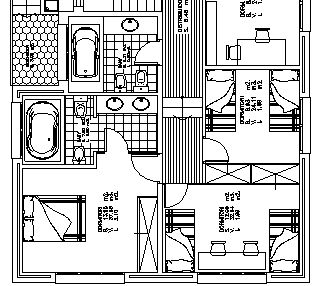 Un bloc és un conjunt d'entitats agrupats en un sol objecte compost. En crear un bloc se li assigna un nom amb el qual se'l seleccionarà per incorporar-lo al dibuix com una entitat més. Una vegada incorporat al dibuix, es pot editar amb els comandaments d'edició habituals: desplaçar, copiar, girar, escalar, simetria, etc. La figura 1 representa una part d'una planta d'un habitatge. Hi podeu observar certs elements que són susceptibles de repetir-se en altres dibuixos de la mateixa naturalesa com són: taules, llits, lavabos, banyeres, etc. Seria bo poder emmagatzemar aquests elements per incorporar-los al dibuix quan calgui sense la necessitat d'haver-los de dibuixar cada vegada. Això s'aconsegueix fent que aquests elements esdevinguin blocs. |