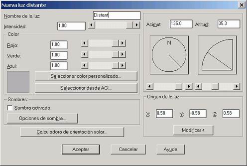 | Cliqueu sobre la finestra que hi ha a la dreta del botó Nuevo i seleccioneu Luz distante. Cliqueu a continuació el botó Nuevo. Us apareixerà el quadre de diàleg Nueva luz distante tal com veieu a la Figura 7. | |