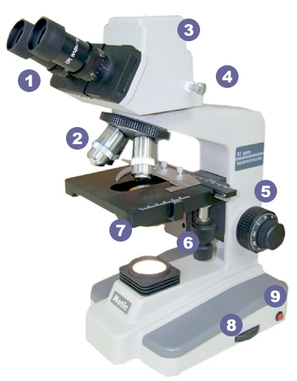Les parts del microscopi Observeu a la foto les parts principals del microscopi: