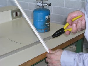 - Foradeu pel lloc del primer senyal amb el filferro calent el perfil