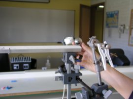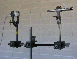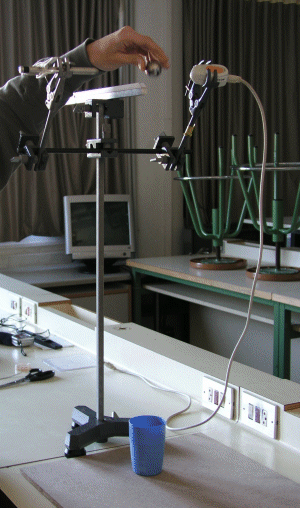 - Agafeu el punter làser i el sensor de llum amb les pinces,