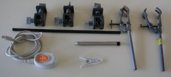 - Reuniu el següent material:una tija curta, tres nous, dues pinces,