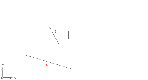 Obriu un nou document de les característiques habituals. En aquest cas, no activeu ni la Rejilla ni la Resolución; també assegureu-vos de que la funció F3 està desactivada (Comando: <RObjeto desactivado>). Dibuixeu amb clic directe un parell de línies (A i B) com les que mostra la imatge següent: |
