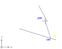 Ara dibuixareu una línia tot fent servir la referència a objectes Perpendicular, de manera que un extrem de la nova línia es trobarà, per exemple, en un punt final del segment B i l'altre sobre el segment A, essent la línia resultant perpendicular a aquest últim. Feu el següent: