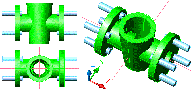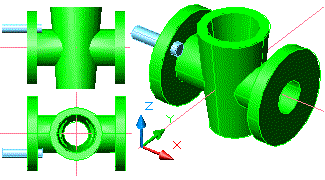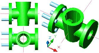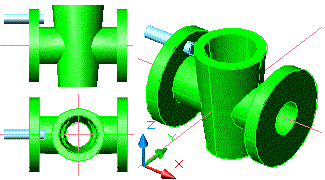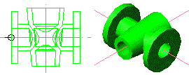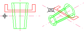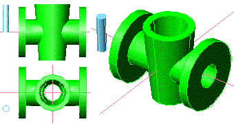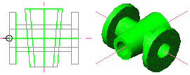 Els blocs no es poden utilitzar directament com a contorns per generar sòlids. S'han de descompondre prèviament. El treball descrit a partir d'ara es pot fer en qualsevol finestra gràfica. S'està i se seguirà treballant únicament en el sistema de coordenades universals. D'aquesta manera, el programa ens obliga a utilitzar els comandaments 3D, per orientar i recol·locar els objectes en l'espai. |