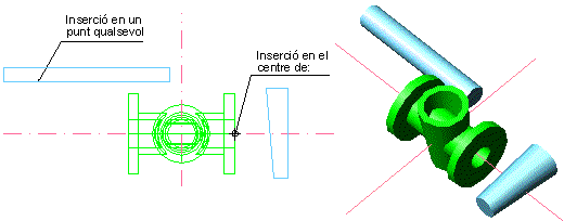 El dibuix representa 2 eixos perpendiculars amb un punt sobre un d'ells per inserir els blocs predefinits.