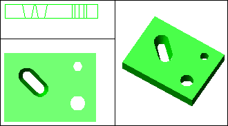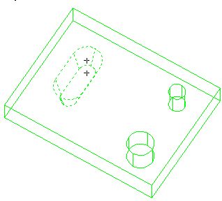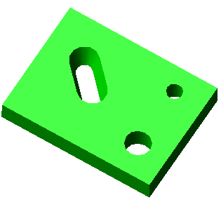 100 x 75 unitats. Dins hi ha una ranura i dos forats cilíndrics.