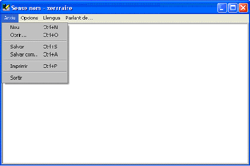 veiem la disposició per defecte del menú: Veiem activada la primera opció, v Control del cursor i Return per controlar el teclat, fa que funcioni el que acabem d'explicar o sigui que premem les tecles de cursor van sortin les lletres i les funcions. Si violguéssim fer servir el programa com un processador de text normal podriem desactivar aquest menú. La segona opció, v Llegir la lletra que s'escriu, fa que al prèmer, return, i s'escrigui una lletra aquesta torni a ser llegida per confirmar el que s'escriu. Creiem que es millor deixar aquesta opció activada. La tercera opció, Veure la lletra que es diu, per defecte està desactivada, si l'activem fem que surti en un quadre molt gran es vegi la lletra a escriure. |