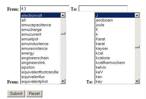 El funcionament de la pàgina és totalment intuïtiu. Només cal introduir la quantitat a la caixa de text superior esquerra i escollir a les caixes de text amb barres de desplaçament les unitats d'origen i destinació. A continuació, cal prémer el botó retolat Submit i apareixerà una pàgina amb el resultat.