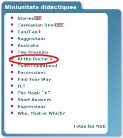 1. Go to Edu365, click on ESO, Llengua anglesa. The Miniunitats didàctiques (MUDs) cover differents parts of the curriculum. (If you click on Totes les MUDs you will find them classified according to the skills). Choose At the doctor's