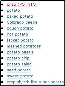 A search for potato, for example, will produce the following results: