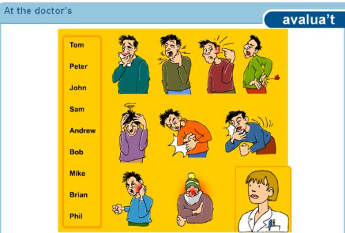 the doctor's 1. Do the two introductory activities. 2. Click on 3. What's the matter with each person? Listen and write down their problem next to the name.