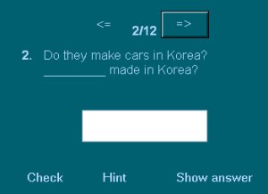 4. Passive questions is a short-answer quiz where active questions must be turned into passive ones by writing the missing words in the space provided. Click on the arrow to go to the next sentence. Click on Check before you move on to the next sentence. Click on Show answer or Hint if you need help. |