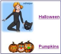 1. Let's take Halloween, for example. We will find countless resources at The Holiday Spot (This site also includes Jewish, Hindu and Chinese festivities, so it is a great place to practice multiculturalism). At the top of the page we find the month's festivities. Go to the bottom of the page to find the calendar with the year's holidays. Find October and click on Halloween. If you are planning a traditional activity, you'll find the History of Halloween or Spooky stories to prepare a reading comprehension. This can be combined with an online Halloween celebration by sending a Halloween card or playing Trick or treat online.