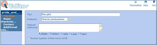 The Editor is the tool that lets you create, edit and publish materials (type in a title and click on Crea quadern to start a new one).