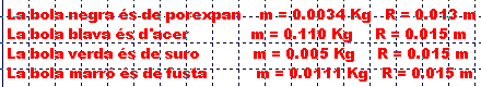 que indiqui la massa, el material i el radi de cada bola. Feu un clic sobre