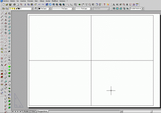 Comproveu la visualització del dibuix a Perspectives; vegeu la figura 16. Encara que més endavant no es digui textualment que ho feu, sempre podeu comprovar el desenvolupament de la pràctica en aquests espais per estar segurs que tot és correcte. No està de més comprovar els passos intermedis per aconseguir el resultat final desitjat. |